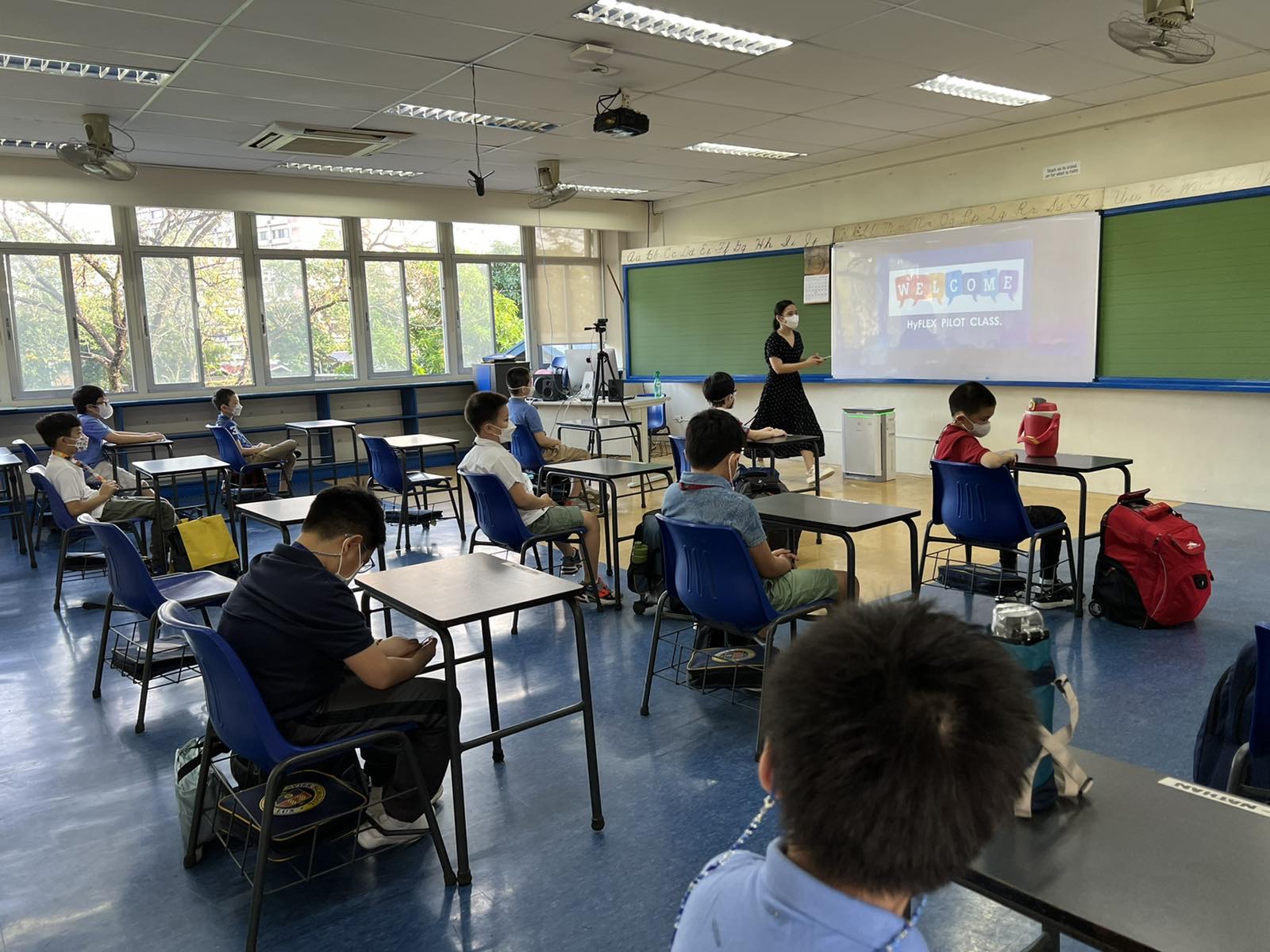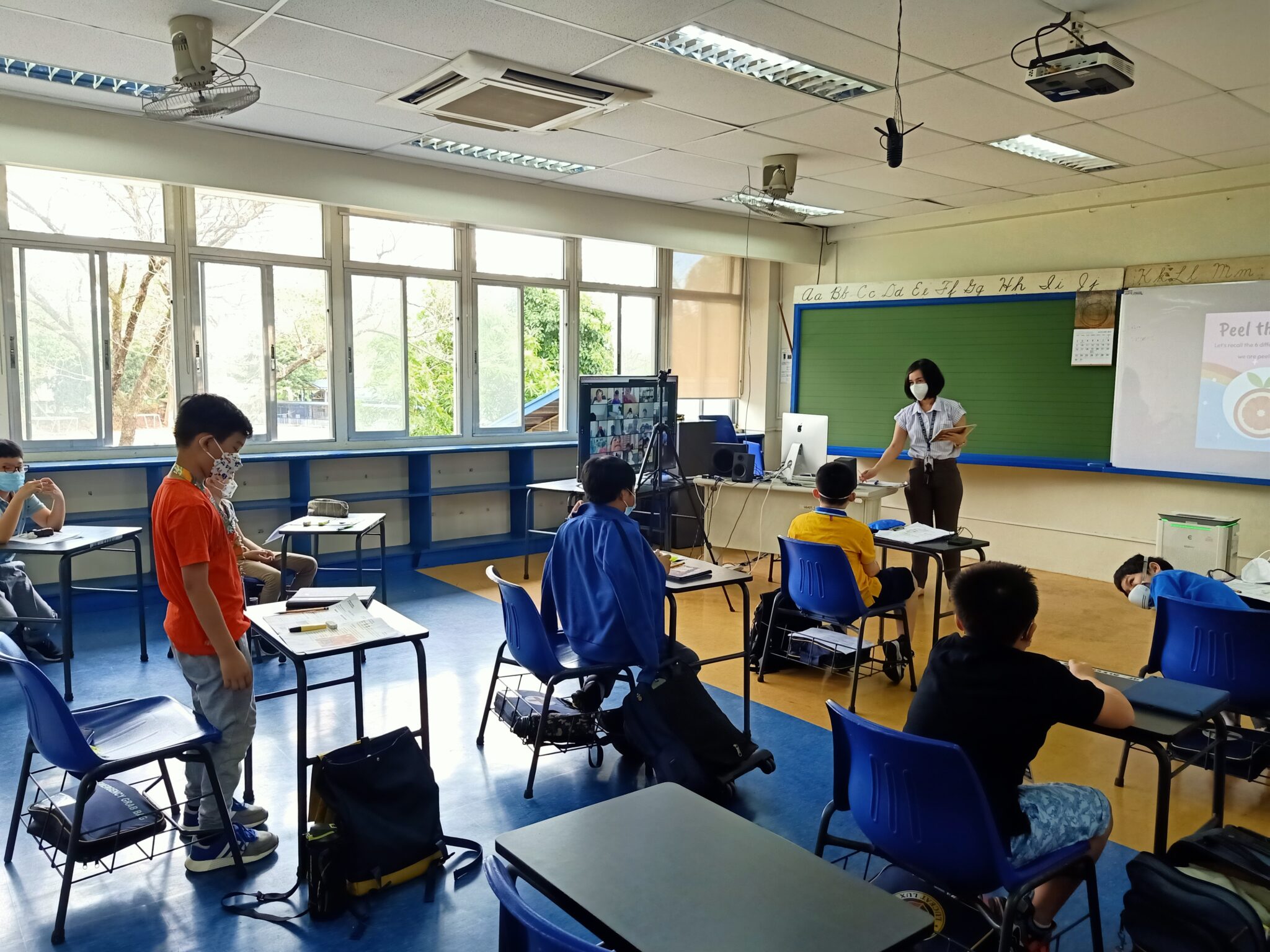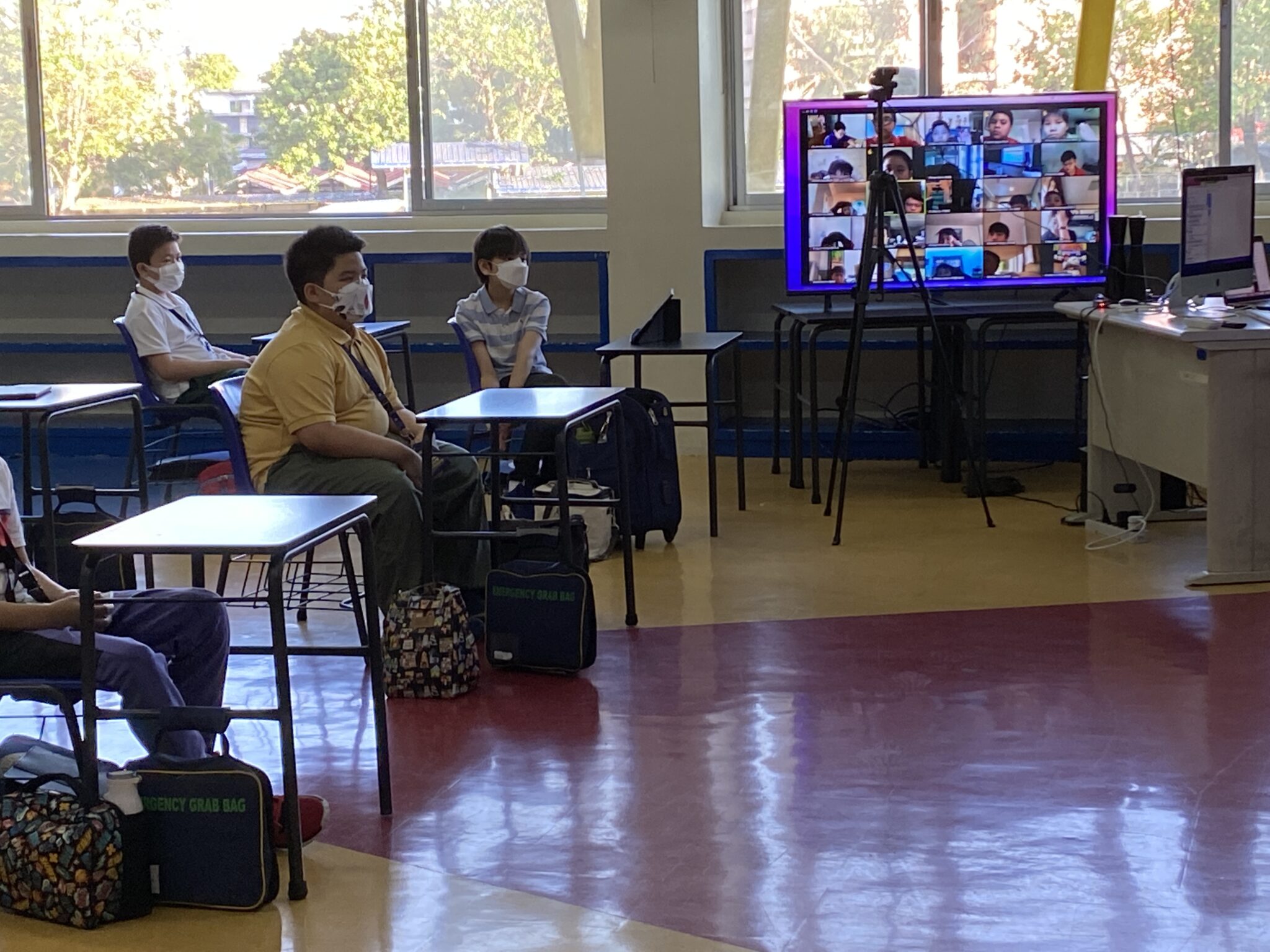 The Department of Education (DepEd) and the San Juan City government have given approval for the implementation of the Hyflex Pilot Classes at Xavier School for the months of February and March 2022.  The Hyflex structure means that both online and onsite students will be progressing together with the use of technology tools set up in each classroom.  Parents were asked to volunteer for one week of face to face classes, but only 15-18 learners were approved for participation as “roomies.” The rest, known as the “Zoomies,” continue to follow the class online.  The pilot classes involve only one section per grade level, and are a valuable learning experience for the school to implement the hyflex structure when the new school year starts in June.