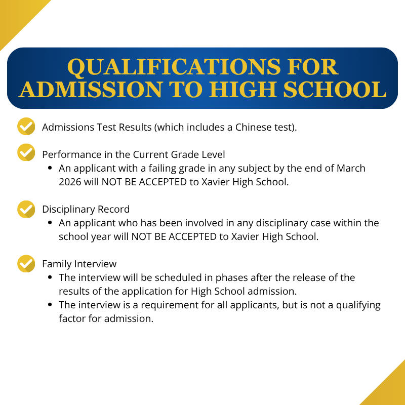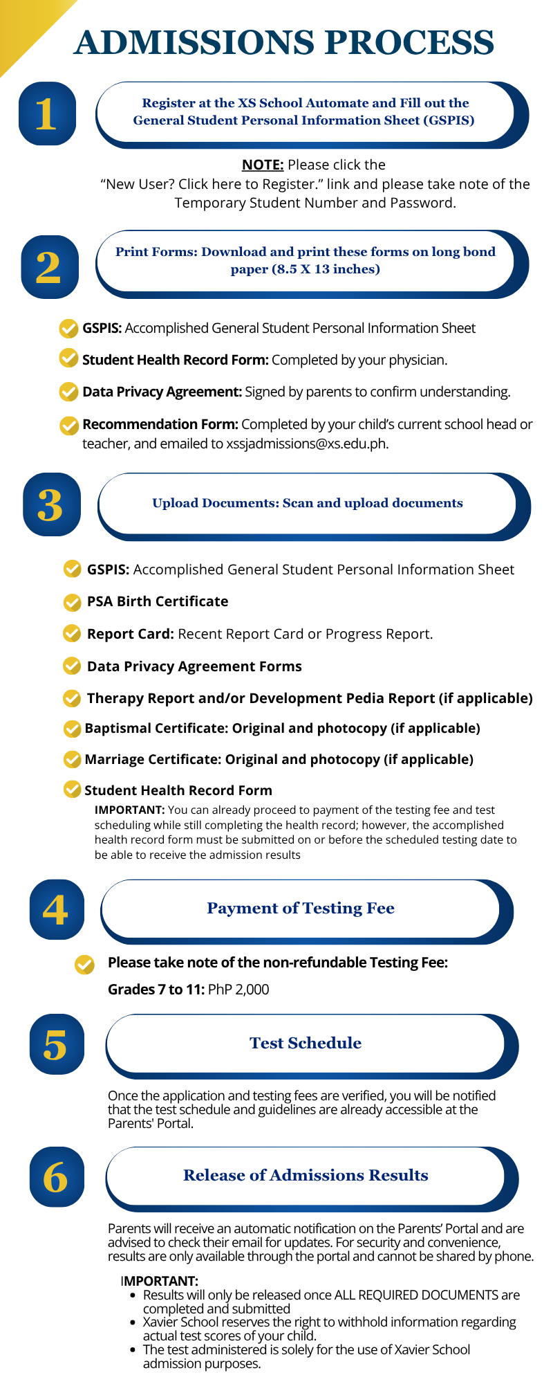 – For applicants who have been accepted, parents are required to make a reservation to express their intention to enroll their son at Xavier School.
