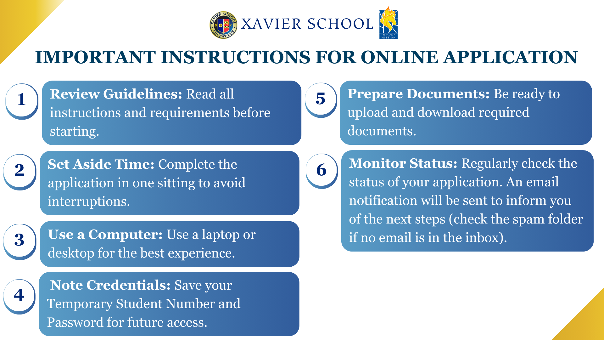 As such, the school offers the Grant-in-Aid Program for financially challenged but otherwise qualified students the opportunity of quality education that Xavier School offers.