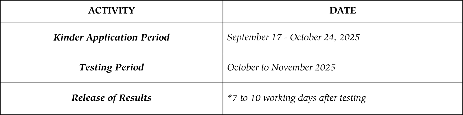 Kinder Admissions Home Page